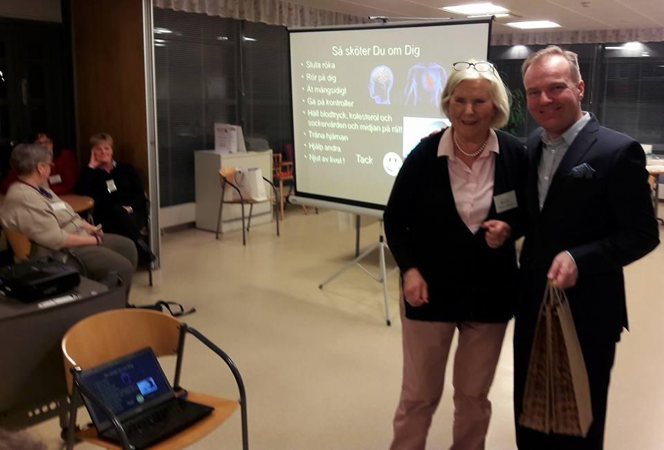 Föredrag av Robert Bergholm (Efter Nio) "Sköt om dig". Hur undvika och märka Hjärt och artär sjukdomar samt hjärnblödning.